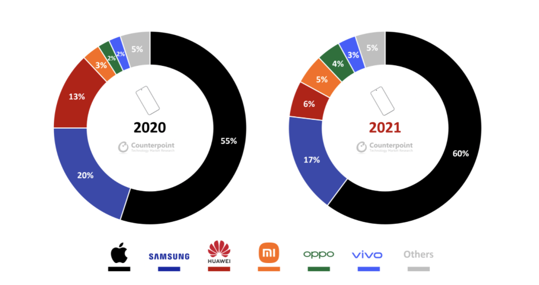 Counterpoint:2021 年全球高端智能手机市场销量创历史新高